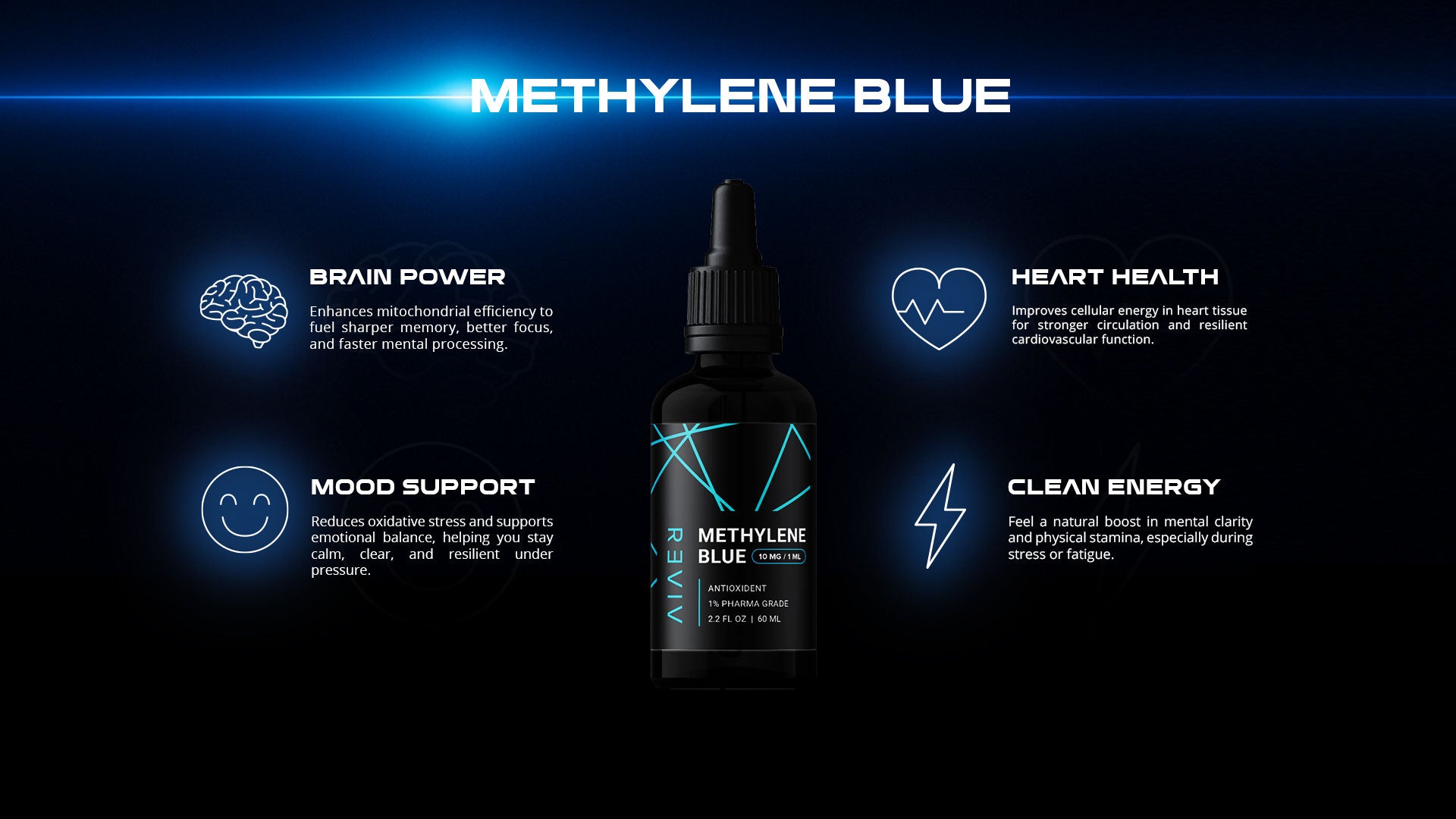 Reviv Health Methylene Blue Tincture—your daily ally for cellular energy, cognitive support, and antioxidant protection, thoughtfully formulated for informed wellness seekers.